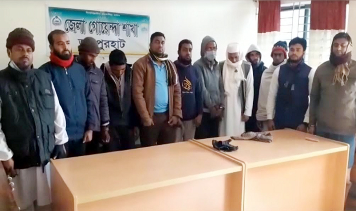 সিলেট এইজ: তত্ত্বাবধায়ক সরকারব্যবস্থা পুনর্বহাল, খালেদা জিয়া, আলেম ও ওলামাদের মুক্তিসহ ১০ দফা দাবিতে জয়পুরহাট সদরের বামনপুর সগুনা চারমাথা মোড়ে বিক্ষোভ মিছিল করেছে জামায়াতে ইসলামীর জয়পুরহাট সদর উপজেলা শাখা। এ সময় অবিস্ফোরিত ৬টি ককটেলসহ জেলা জামায়াত-শিবিরের ১২ নেতা-কর্মীকে আটক করেছে জেলা গোয়েন্দা পুলিশ (ডিবি)।শনিবার সকালে তারা এ ঝটিকা মিছিল বের করে। আটকরা হলেন- সদর উপজেলা জামায়াতের নায়েবে আমীর শাহ আলম দেওয়ান (৪৫), জামায়াত নেতা নাহিদুল ইসলাম (৩০), জামায়াত কর্মী শহিদুল ইসলাম, আমিনুল ইসলাম, শিপন, নুর নবী, জেলা ছাত্র শিবিরের সভাপতি আসাদুল ইসলাম আসাদ, শিবির কর্মী মামুনুর রশিদ, মারুফ হোসেন, মেহেদী হাসান, মেশকাত শরীফ ও সোহরাব আলী। জয়পুরহাট জেলা গোয়েন্দা পুলিশের (ওসি) শাহেদ আল মামুন জানান, সকালে সদর উপজেলার বামনপুর সগুনা চারমাথা এলাকায় জামায়াত শিবিরের নেতাকর্মীরা একটি ঝটিকা মিছিল বের করে শহরের দিকে আসছিলেন। জামায়াতের মিছিলের নেতৃত্বে ছিলেন সদর উপজেলা জামায়াতের নায়েবে আমীর শাহ আলম দেওয়ান। খবর পেয়ে গোয়েন্দা পুলিশ তাদের মিছিলের সামনে গিয়ে অবস্থান নেন। এ সময় তারা পুলিশের উপস্থিতি টের পেয়ে যত্রতত্রভাবে ককটেল বিস্ফোরণ ঘটায়। ডিবি পুলিশও ৬ রাউন্ড ফাঁকা গুলি নিক্ষেপ করে পরিস্থিতি নিয়ন্ত্রণে আনে। পরে ঘটনাস্থল থেকে ৬টি অবিস্ফোরিত ককটেলসহ জেলা জামায়াতের ১২জন নেতা কর্মীকে আটক করা হয়। তাদের বিরুদ্ধে মামলার প্রস্ততি চলছে বলেও জানান পুলিশের এই কর্মকর্তা।