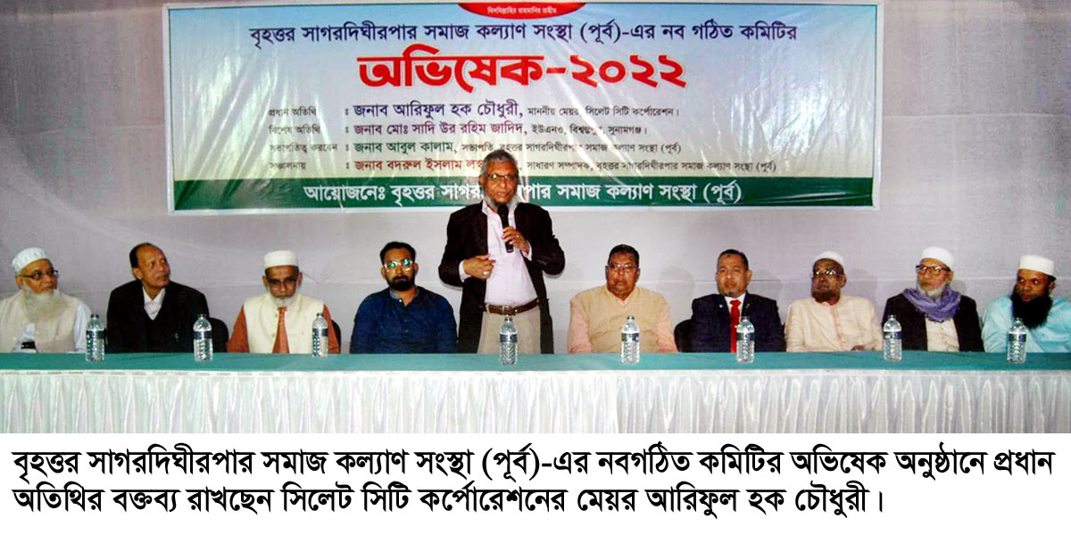সিলেট এইজ : সিলেট সিটি কর্পোরেশনের মেয়র আরিফুল হক চৌধুরী বলেছেন, দেশ-জাতি, সমাজের কল্যাণ ও উন্নয়নমূলক কাজের মাধ্যমে সমাজকল্যাণ সংস্থাগুলো নিরলস ভাবে কাজ করে যাচ্ছে। রাষ্ট্রের পাশাপাশি সংস্থার উল্লেখযোগ্য প্রতিটি কার্যক্রম প্রশংসনীয়। তিনি বলেন, সাগরদিঘীরপার একটি ঐতিহ্যবাহী অভিযাত এলাকা। এই এলাকার প্রতি সিসিকের সুদৃষ্টি সবসময় রয়েছে। আগামীতেও উন্নয়ন সহ সকল ক্ষেত্রে এই মহল্লা অগ্রাধিকার পাবে। তিনি বৃহত্তর সাগরদিঘীরপার সমাজকল্যাণ সংস্থা’র মত অন্যান্য সংস্থা, সমিতি ও সংগঠনগুলোকে এলাকার উন্নয়নে কাজ করার আহবান জানান।তিনি গত ২৩ ডিসেম্বর শুক্রবার রাতে জনস্বাস্থ্য প্রকৌশল অধিদপ্তর সিলেট বিভাগীয় কার্যালয় মাঠে বৃহত্তর সাগরদিঘীরপার সমাজ কল্যাণ সংস্থা (পূর্ব)-এর নবগঠিত কমিটির অভিষেক অনুষ্ঠানে প্রধান অতিথির বক্তব্যে এসব কথা বলেন।